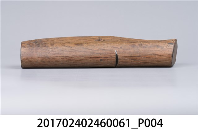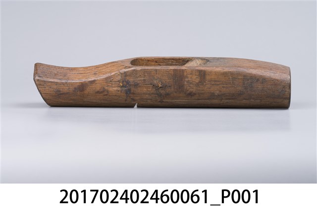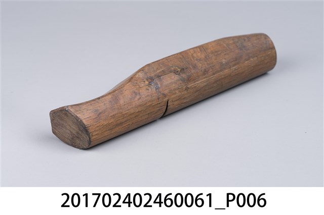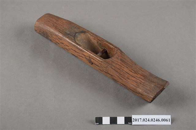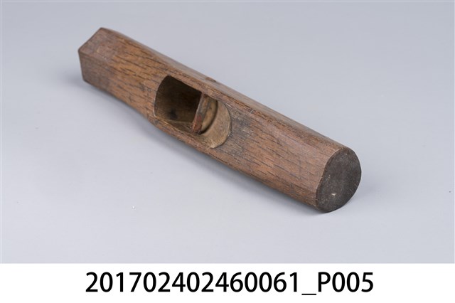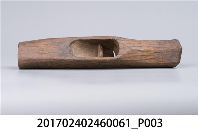此藏品出自南投街日治木匠工具箱,為一鉋刀,主要用於鉋削加工。(撰稿人:曾國棟)