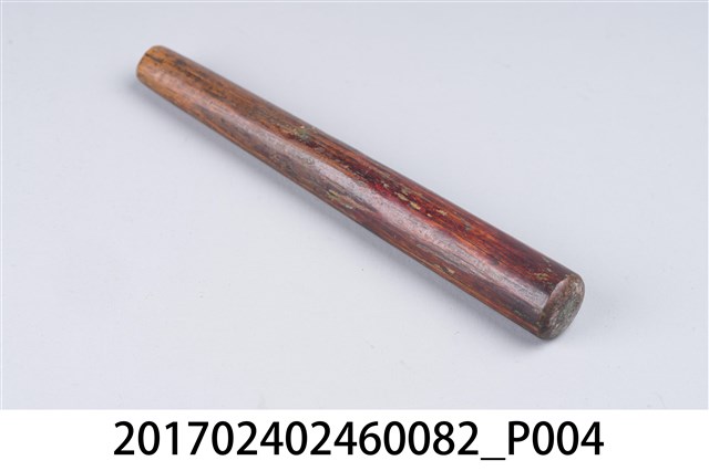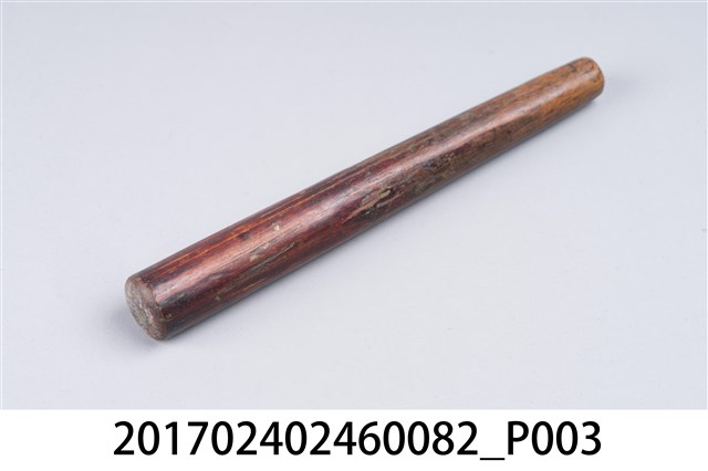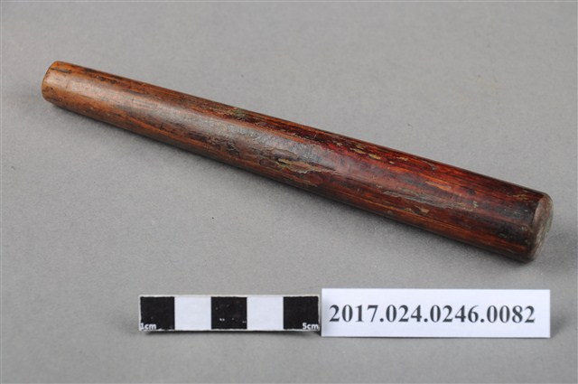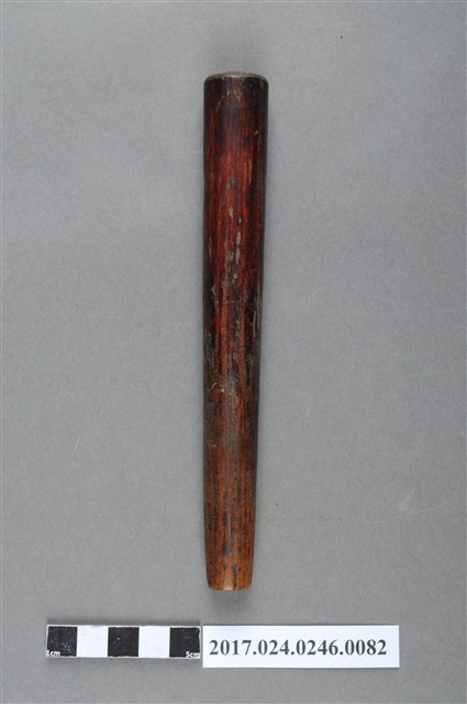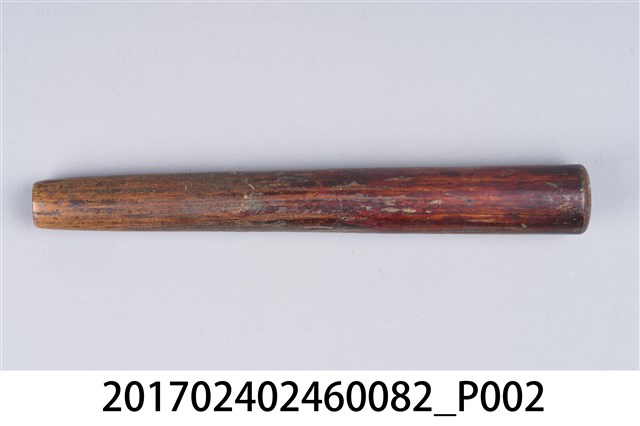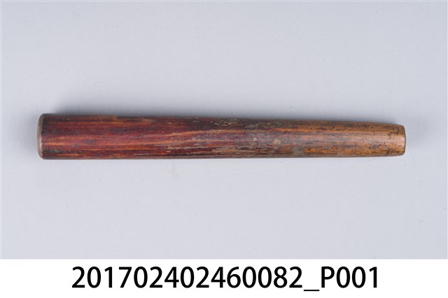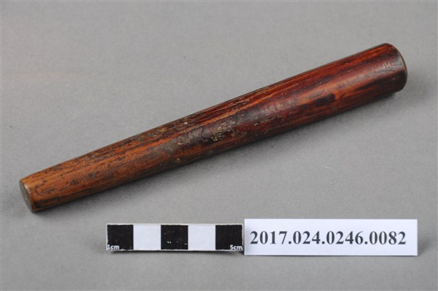 本文物為日治時期南投街木匠工具箱內木尺規,類似杵狀物,細端有磨損痕跡。(撰稿人:曾國棟)