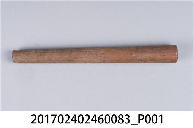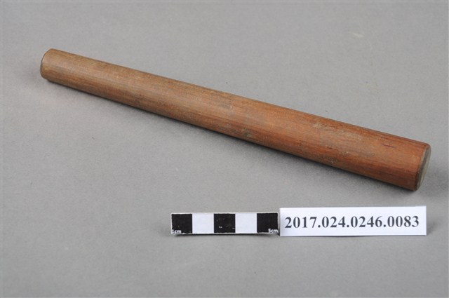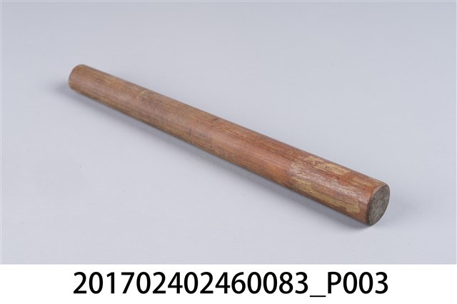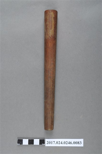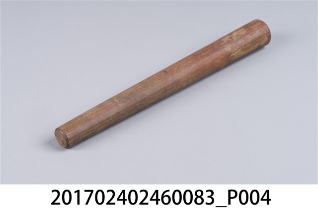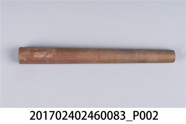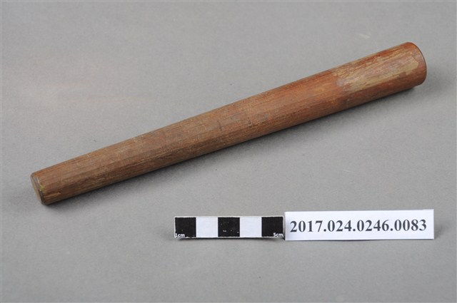 本文物為日治時期南投街木匠工具箱內木尺規,類似杵狀物,細端有磨損痕跡。(撰稿人:曾國棟)