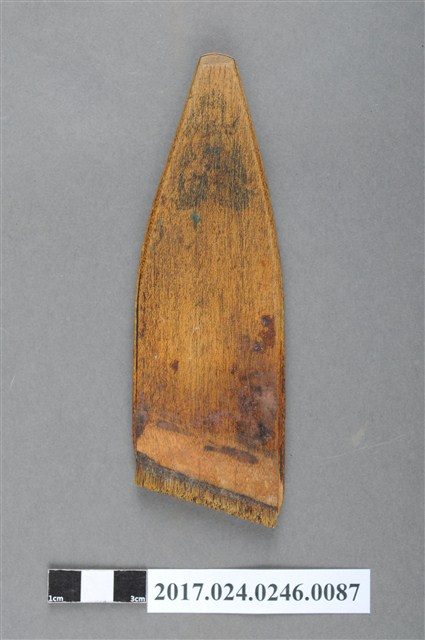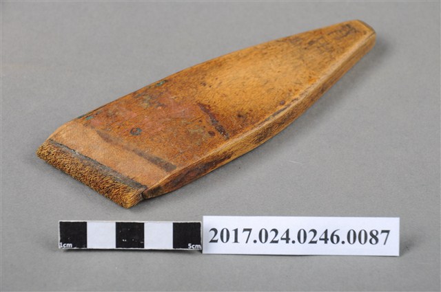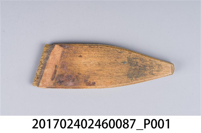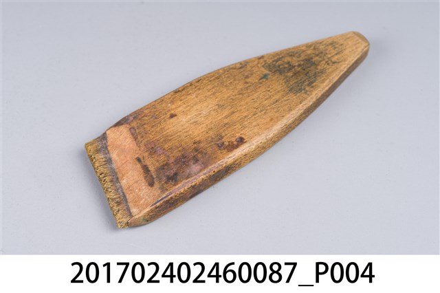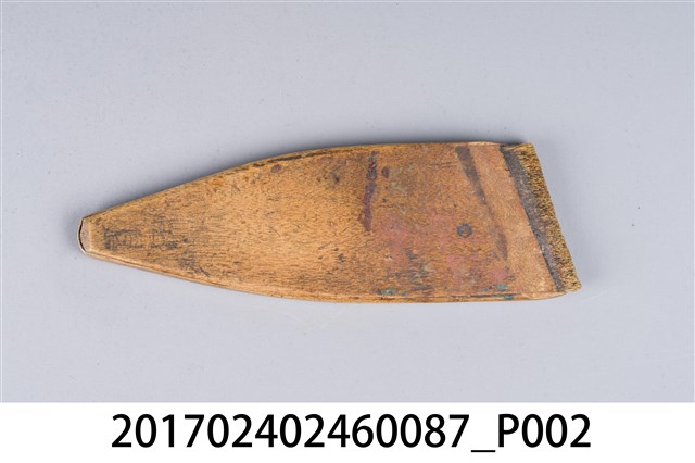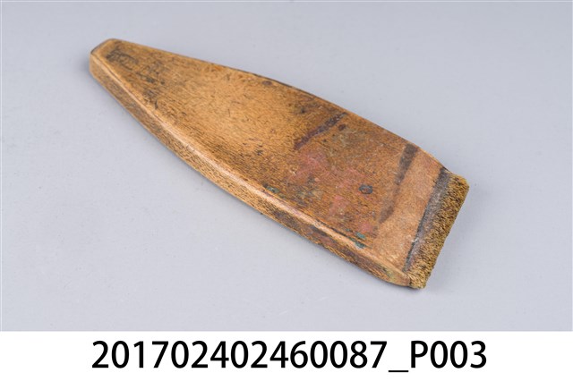 本文物為日治時期南投街木匠工具箱內一件漆刷,木作的工具,主要用以將漆或油均勻塗至物品表層。(撰稿人:曾國棟)