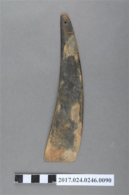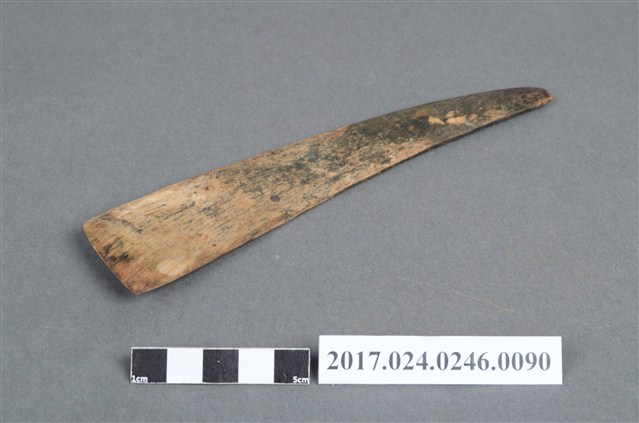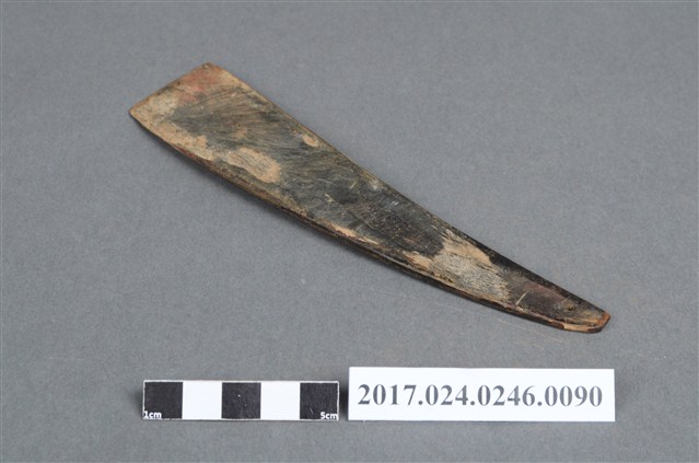 本文物為日治時期南投街木匠工具箱內一件漆刷,木作的工具,主要是調漆、塡漆灰、調色漆、刮灰、刮漆等。(撰稿人:曾國棟)