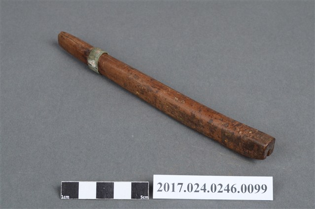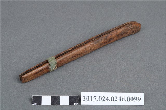 本文物為日治時期南投街木匠工具箱內一件鋸柄,木作的工具,主要是用以鋸切木材的工具。(撰稿人:曾國棟)