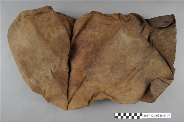 此為日治時期南投街木匠工具箱內容物,為一張包布,外觀無法判定曾包裹何物,十分舊且滿布皺褶。(撰稿人:曾國棟)