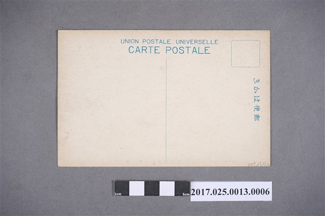 1. 本文物為盛裝阿美族蕃丁明信片,前面為黑白照片,其中有一排的阿美族青年穿著傳統服飾,並且頭戴羽冠,在羽毛和傳統花紋的襯托下看起來有如盛裝打扮一般;其周圍有許多樹木和草叢。此明信片的正下方用黑色日文字體寫有(台灣)盛裝打扮的阿美族蕃丁,且有Y135的編號。背面則是寫有郵政明信片和POST CARD等明信片的標記,還有貼郵票的方框。2. 明信片也就是現在的明信片,起源於1864年英國女皇伉儷印刷之繪圖聖誕卡,並以郵遞的方式政贈親友,因此掀起了私人卡片寄送的風潮;而第一張由國家之名所發行的官方明信片為1969年由奧地利郵政局所發明,並以其作為一種不具保密性的信件,由於其郵資較一般信件低廉,因此廣受一般名眾歡迎。日本於明治維新(1868年)以後,由於西方政策的推行,因此效仿西房的郵遞政策,也開始製作官方明信片稱為「葉書」,若在葉書上面放置「寫真作品」和繪畫等就稱為「明信片」。另外,在1900年之前明信片的印製和上面的寫真內容都受到官方霸權的影響,直到1900年之後才有私人明信片的出現。3. 寫真一詞就是攝影、照片之意,寫真為台灣開港通商後,由攝影者引進,其大多為傳教士、旅行家、自然學者、領事或海關職員。日治時期日治時期的寫真帖出版者,多為總督府所屬機關,或為民間寫真館,其攝影者多以日人為主。攝影內容包含全島著名之山川、城市、廳廨、廟寺、人物、物產、工業、人文活動、風俗民情等。攝影目的有學術研究、活動宣傳、人物紀念、戰事紀錄、風景紀錄、建設成果等,而殖民政府把其印製在明信片上面廣為發行,多有頌揚功績、彰顯殖民成果的意涵。
