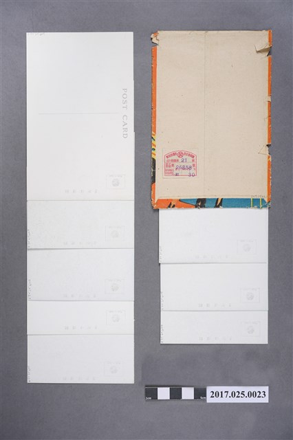 此文物為《台灣風景》第四集明信片組,共8張明信片,都為彩色印刷,分別為「常夏の國を治むる總督府」、「繁茂せる甘庶畑」、「杵つきの歌(日月潭)」、「蒼然たる阿里山の神木」、「雲表に聳ゆる新高山」、「珍らしい竹の舟(安平)」、「斷崖路の奇觀(蘇花)」、「小紅頭嶼より晀めたる大紅頭嶼」等8張不同的台灣風景。其圖案中都有S.MISAKO的署名。