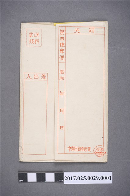 本文物為日治時期臺灣的印象明信片組的封套,為彩色印刷,其背景圖案為椰子樹及兩隻泡在水中的水牛。封套上文字除臺灣的印象外,更寫有「バナヘ實る常夏の樂土」及「解說付高級板」等文字,並註明內有「十六枚組」。其背面則寄信人等資訊,並印有昭和年的字樣,供人填寫日期,而其角落更有一寫「大正寫真工著所TAISHOP.T.CO」的鳥類戳章。