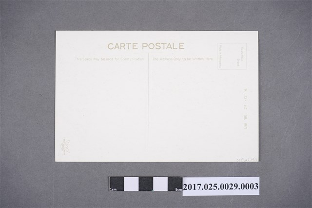 本文物為臺灣的印象明信片組之一,為黑白印刷,圖中為5隻水牛在水中行走的景觀,同時一旁也伴隨禽類在水面,左下方除有圖名,更有對水牛在水中的行為進行簡介,右下角則寫有「臺灣所見」的字樣。背面貼郵票處,則寫有「Taisho Hato Brand,Made in Wakayama」的文字。 臺灣水牛為印度種,為沼澤型水牛,外觀有一對長且後彎的新月長角,毛色為深黑青灰色,蹄大平整,對於其在水田、沼澤行走不易下陷,合適水田工作。由福建、廣東一代引入,並隨大陸移民遷移而引進。其用途分為役用及肉用,肉用多為役用淘汰後才食用。