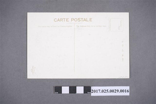 本文物為「臺灣所見」黑白明信片套組中之一件。拍攝地點為高雄旗後,椰子主要分布南北回歸線之間,而臺灣主要是以高雄、屏東、臺東為主要產地。右上角印有文字,描述很高興聽到「發現椰子葉了」,覺得充滿南國風情,雖然在臺灣椰子樹很常見,但旗後椰子林也是別有一番滋味。明信片背面郵戳處的「MADE IN WAKAYAMA」字樣可知此套明信片是在日本和歌山所製。