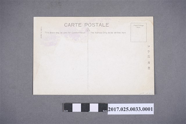 本文物為鳥居濟生堂於昭和時期所發行「北投溫泉」單色印刷名信片之一。左下角印有VIEW OF THE FAMOUS PLACE, HOT SPRING OKUTO及臺灣名勝(十二勝之一)北投溫泉…公園…溫泉旅館;右下角印有鳥居濟生堂發行。 北投公園是依「公園管理規則」設立,由臺北廳下街莊共同經營的。