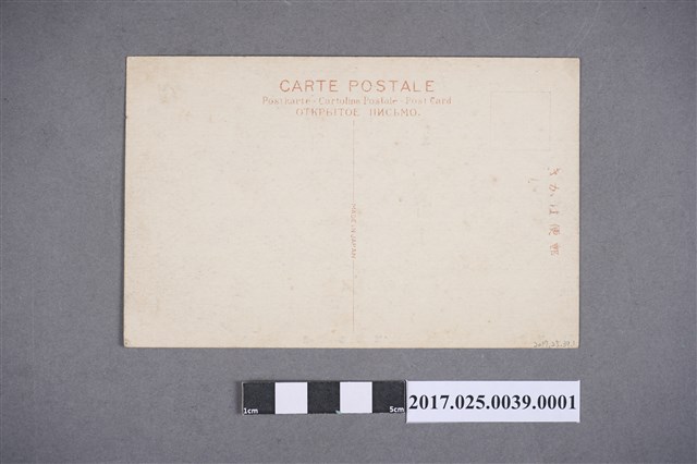 本文物為昭和時期臺南市街「臺南市郵便局」黑白明信片套組之一,柯羅版印刷。底下印有(不可複製)及臺南市郵便局等字樣。 由建築師森山松之助在1909年時所設計,該建築的特色為其入口處的衛塔與牆面上的橫帶裝飾。