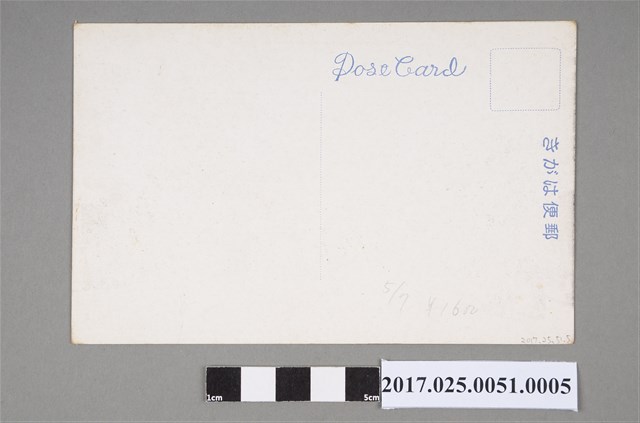 本文物為昭和時期「臺北市」市景黑白明信片套組中的大稻埕大平町,影像中可見大稻埕大平町筆直的街道,兩旁商店林立,路上的行人多以步行或騎腳踏車,另有些人以推車、托車、扁擔等方式運送貨物。明信片上面寫有「DAITOTEI TAIHEICHO (FORMOSA TAIHOKU)」、「(臺北)大稻埕大平町」的字樣。本明信片背面以藍色印刷字體,中間以直線分隔書寫內容與地址的部分,以英、日文標示「POST CARD」、「郵便はがき 」。