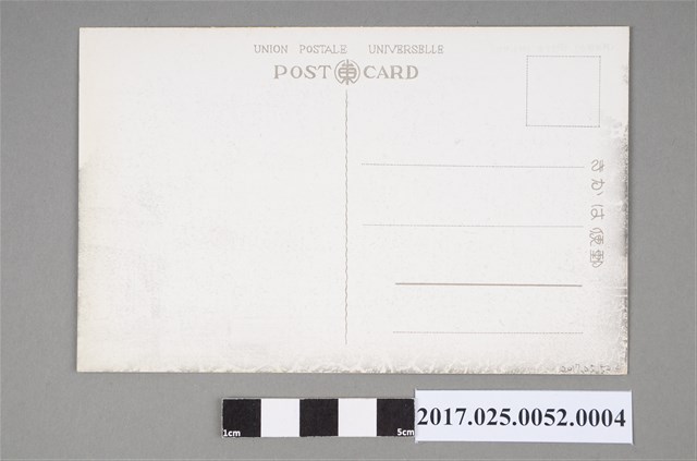 本文物為「臺南名所」黑白明信片套組之明信片,「臺南名所」為昭和時期印刷出品之黑白明信片套組,內含的十六張明信片上印有臺南十六處著名的地方影像。本文物為日治時期臺南燈塔之黑白明信片,由明信片出品的時間與燈塔外觀可推斷為日治時期整建過後的燈塔。明治42年日人將燈塔改建為圓型白色之建築,外圍並設有圍牆。明信片背面印有法語「UNION POSTALE UNIVERSELLE」(萬國郵政聯盟)之字樣,也以英文「POST CARD」、日文「葉書」標示出其明信片之字樣。