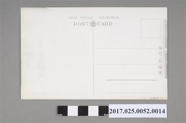 本文物為「臺南名所」黑白明信片套組之明信片,「臺南名所」為昭和時期印刷出品之黑白明信片套組,內含的十六張明信片上印有臺南十六處著名的地方影像。本文物為日治時期臺南銀座通之黑白明信片,影像中可見銀座通道路寬廣,路旁兩排街屋建築樣式一致,二、三樓街設有陽臺,大多將招牌掛於二樓陽臺下的牆面。以行道樹與路燈整齊地分隔出車道與人行道,並從汽車、腳踏車行駛的方向可知當時的道路通行方向是右邊駕駛。明信片背面印有法語「UNION POSTALE UNIVERSELLE」(萬國郵政聯盟)之字樣,也以英文「POST CARD」、日文「葉書」標示出其明信片之字樣。