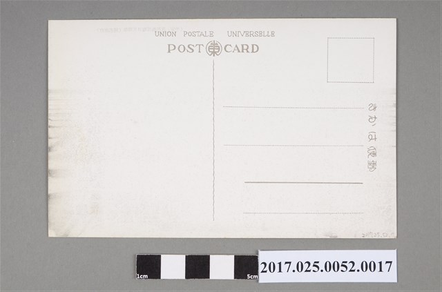 本文物為「臺南名所」黑白明信片套組之明信片,「臺南名所」為昭和時期印刷出品之黑白明信片套組,內含的十六張明信片上印有臺南十六處著名的地方影像。本文物為日治時期安平地區曬鹽情況之黑白明信片,影像中可見一望無際的鹽田中,三名曬鹽工皆著短褲,左邊的曬鹽工頭戴斗笠、身背竹簍,以扁擔擔著兩籃剛曬好的鹽,中間的曬鹽工正在鏟起曬好的鹽,在右邊曬鹽工的腳下可見引進海水的渠道與讓海水初步沉澱的大蒸發池。明信片背面印有法語「UNION POSTALE UNIVERSELLE」(萬國郵政聯盟)之字樣,也以英文「POST CARD」、日文「葉書」標示出其明信片之字樣。