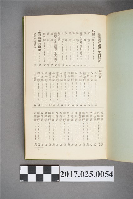 本書目次為,島情一班、臺灣鐵道沿革、縱貫線、潮州線、宜蘭縣、平溪線、淡水線、集集線、臺東縣;附錄為臺灣土產品、臺灣鐵道營業介紹。書中附有「臺灣鐵道路線圖」、「台湾遊覽略圖」兩張圖,及八景十二勝介紹。