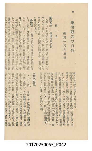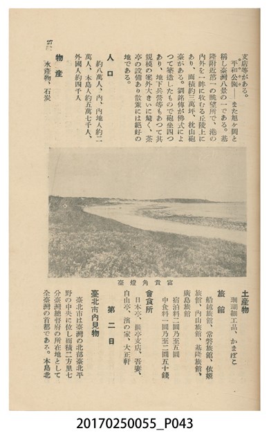 2.書籍內容目次安排有氣候、衛生狀態、產業、臺灣代表名勝等基本介紹,以及留台期間行程安排建議,例如一週旅行、二週旅行規劃建議,各大旅遊景點簡介等。書中印有船隻航行至各港費用及火車收費標準,並附有「臺灣鐵道路線圖」。