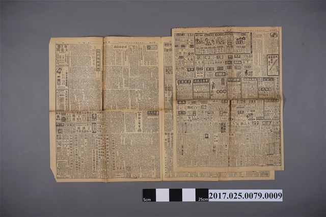 本文物為民國32年6月10日之《新聞報》。報紙名稱下方有本報資訊,如本報為第一萬七千九百二十九號、本報共一張半、售價七角、報社位於上海漢口路274號等。報紙周圍有些許破損。報紙內容有廣告訊息,如藥品、商品廣告(如双馬牌雨衣、司麥脫襯衫)等,及各式啟示文、銀行開業文、尋人啟事、體育新聞等,外國新聞自成一篇,外國新聞以二戰歐陸戰況占多數,其餘為各國瑣事。本報設有「金融與商業周刊」區