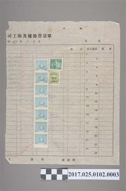 2017.025.0102.0003 民國37年公司薪資及補助費清單
