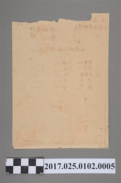 本文物為民國37年11月23日,中鹽布袋鹽場辦事處向玉盛雜貨部購買商品之收據,收據上方破損嚴重。單據內容有大電燈炮兩個、小電燈泡20個、黑棕幕3支、竹幕2支、雜巾10條,總計9450元整。收據中,竹幕單價為300元,小計金額為900元,此處卻紀錄數量2支,有記錯之疑。另外貼有三張中華民國印花稅票,計有十元一張,上印有國父像。 日治時期台灣地區的鹽業由專買局管理。1945年二戰後,政府則將全部鹽田接收並成立台南鹽業公司。1946年為統一鹽政,成立了台灣鹽務管理局,1947年財政部成立中國鹽業公司,才將台灣鹽業交由中國鹽業公司臺灣分公司經營