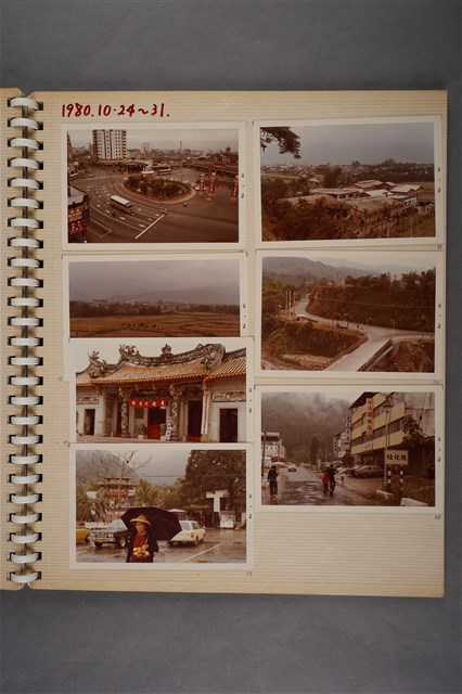 名片收藏部分有東洋大飯店、山賀企業等,還有梨山賓館的收據;旅遊景點如礁溪車站、花蓮車站、西來庵、碧雲寺等。相片冊還有紀錄相本主人於1980年10月24日至31日曾到南投旅遊,照片如日月潭文武廟、霧社山莊等。