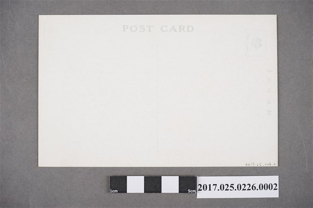 本文物為臺灣市街明信片,正面為彩色油畫風景畫。畫中以椰子樹、紅瓦、閩南式建築來展現臺灣意象。背面則是白底寄件書寫處。