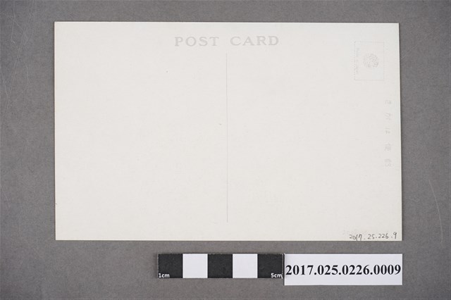 此物件為日治時期明信片,正面為一幅畫作,為日治時期蘭嶼紅頭嶼部落的達悟族原住民在海邊的情景,其拼板舟、丁字褲、魚槍、鐵帽為達悟族傳統服飾,此明信片提名為「太洋の怒濤洗ふ紅頭嶼」。日本在明治維新後,大量引進西方思想與產物,建立起現代化的郵政系統,明信片的概念便在此時傳入日本,最初,明信片乃由政府發行,稱「葉書」、「官葉」,爾後明信片上更印有繪畫或照片,稱「繪葉書」,更在1902年後蔚為風潮。 台灣明信片的出現,可追溯至日本領台內地人移民,或清末傳教士、西方商人來台攜入,在1900日本郵便法修訂後,民間始可自行印刷明信片,而在大正年間的物產共進會、勸業共進會後,台灣開始大量發行明信片,形成熱潮。明信片是以文字傳遞訊息,故使用者多為少數的台灣知識分子外,就是在台日人,除了用以跟日本內地傳遞訊息外,更用以向親友介紹台灣的風景、民俗。