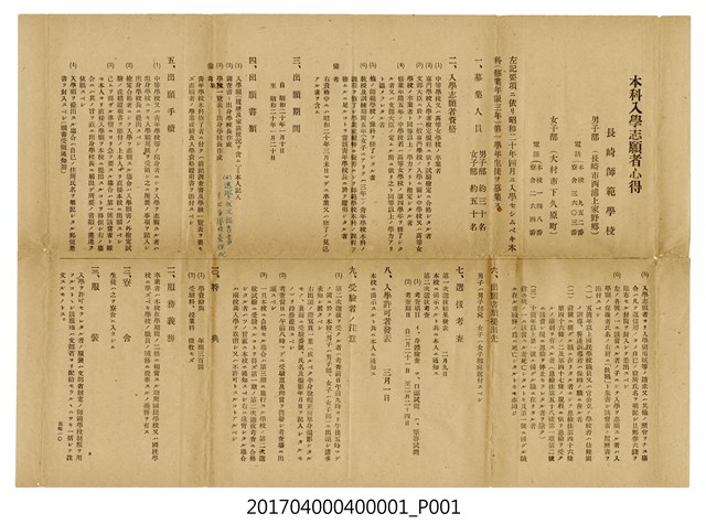長崎師範學校本科入學者志願者簡章及入學申請表