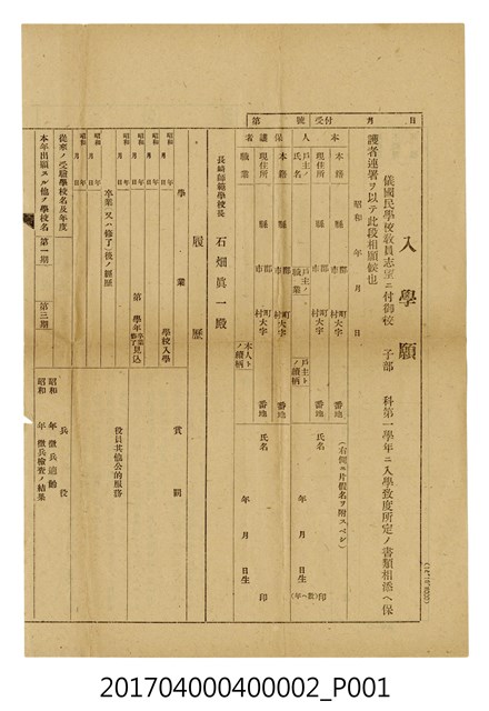 長崎師範學校本科入學者志願者簡章及入學申請表