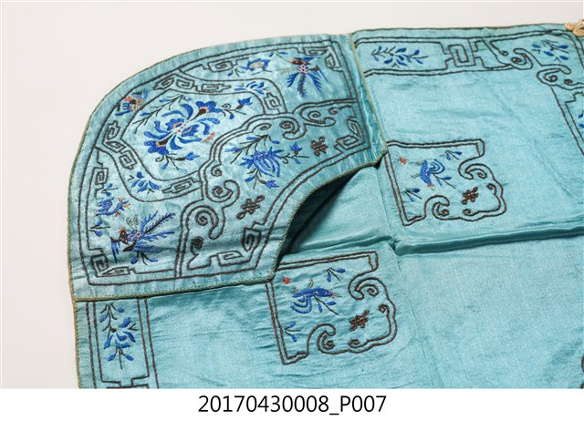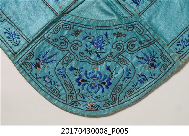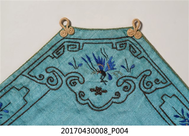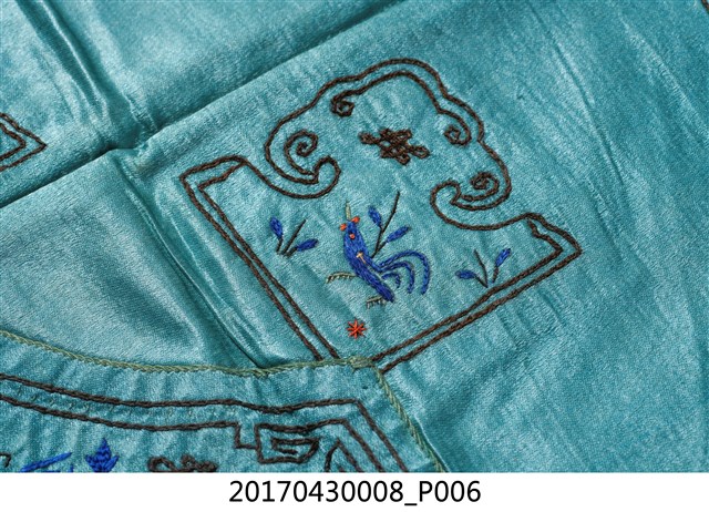 2017.043.0008 湖水綠絲緞彩繡花鳥紋肚兜