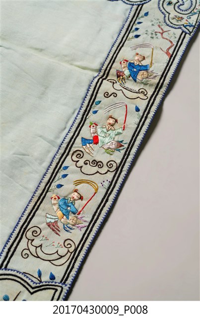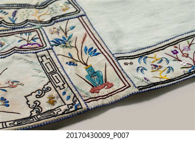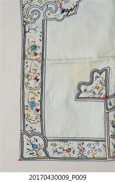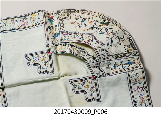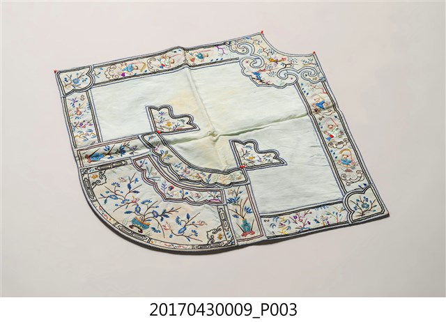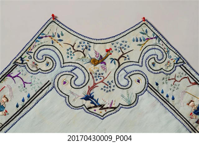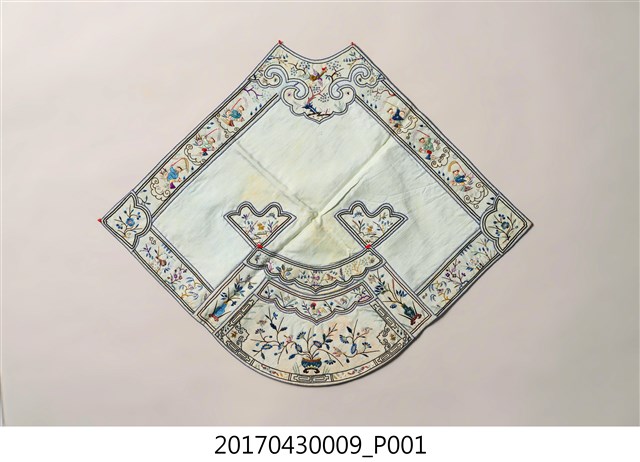 2017.043.0009 水藍色棉布彩繡盆花人物紋肚兜