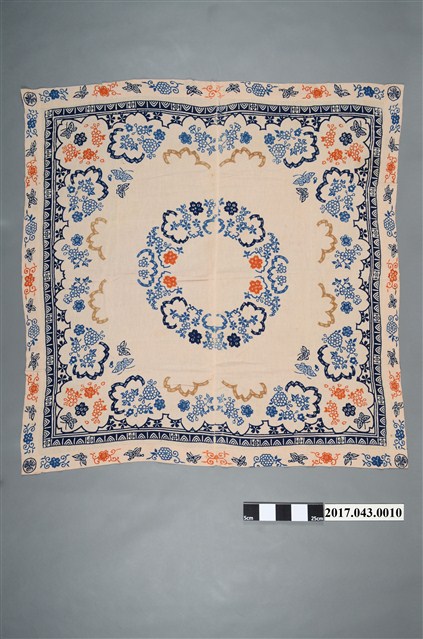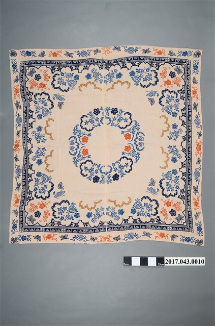 2017.043.0010 白棉布印花花蝶紋桌巾