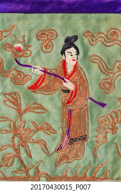 1.王瀞苡,2000。女紅——臺灣民間刺繡,頁:58-62。臺北:商周編輯顧問。2.李莎莉主編,2000。臺灣民間文化藝術:北投文物館的內在采風,頁:109。臺北:南天書局。