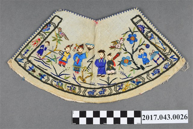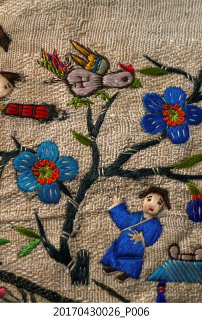 2017.043.0026 肚兜口袋花鳥人物紋刺繡片