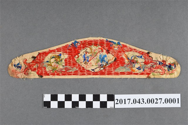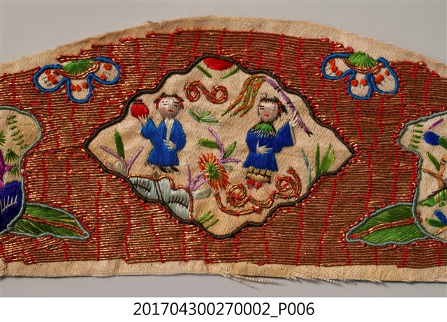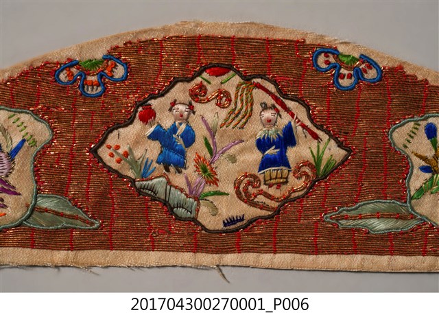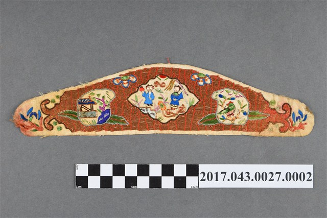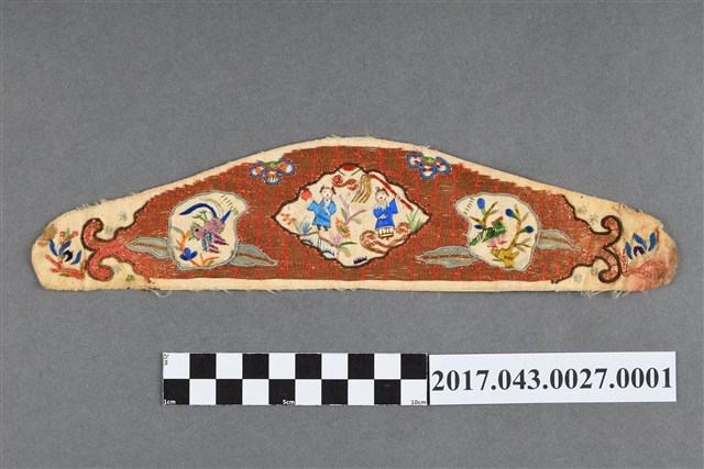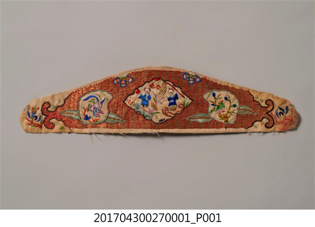 2017.043.0027.0001 米白絲緞繡人物花鳥紋眉勒