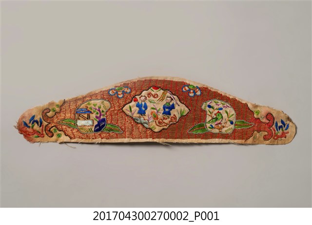 2017.043.0027.0002 米白絲緞繡人物花鳥紋眉勒