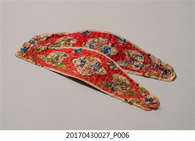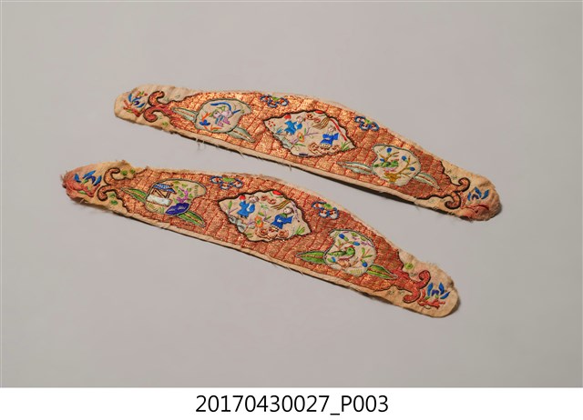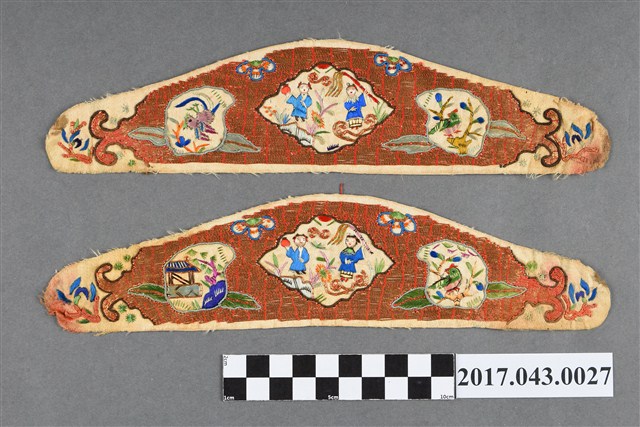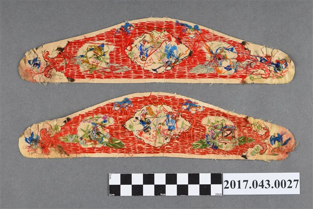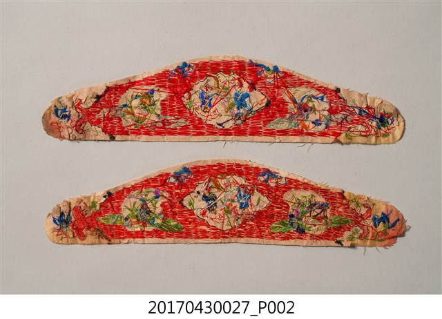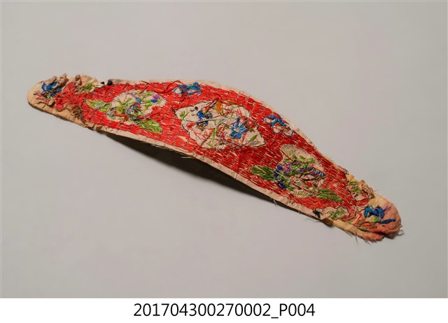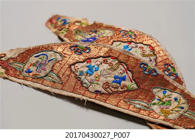 2017.043.0027 米白絲緞繡人物花鳥紋眉勒組