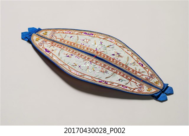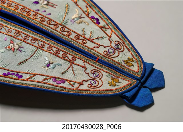2017.043.0028 水藍絲緞繡竹雀紋眉勒