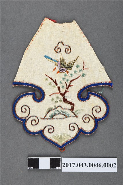 2017.043.0046.0002 如意雲頭形樹石禽鳥紋繡片