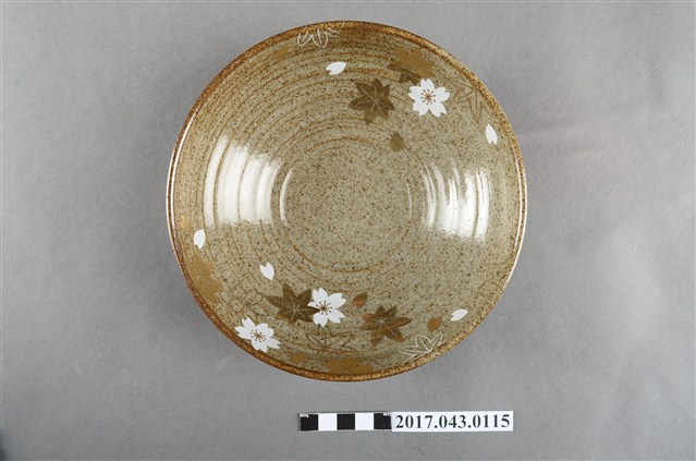 2017.043.0115 橘吉灰釉褐斑金彩白櫻楓葉紋圓盤
