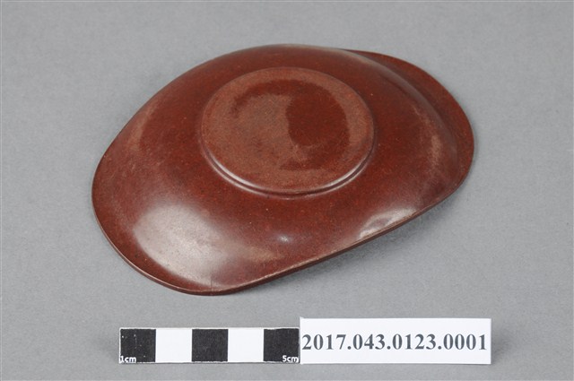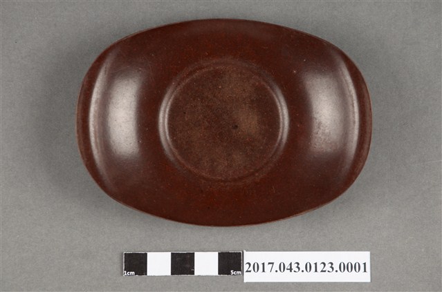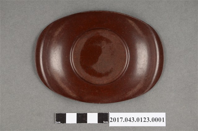 2017.043.0123.0001 褐色橢圓形塑膠茶托組