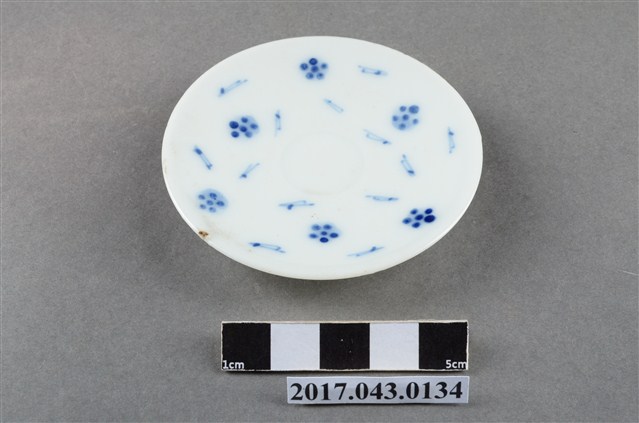 手繪青花花卉紋小圓碟為高溫燒製,薄圓唇,敞口,淺腹,斜壁下收至圈足,圈足徑較小,小於口徑的一半。薄胎,全器施白色釉,釉面細膩瑩潤,呈色白皙,略泛青色光澤,釉色均勻。釉面有些微雜質沈澱。口沿有一處破損痕跡。外壁無紋飾,僅圈足內以鈷藍釉繪一弦紋裝飾。主要紋飾繪於盤面,以鈷藍釉繪兩種紋樣,點狀結組成花卉的樣子,再以淡色釉暈染,另有細線繪成的長形紋飾;紋飾錯落分布於盤面,青花發色適中,有濃淡變化,且略有暈散效果。