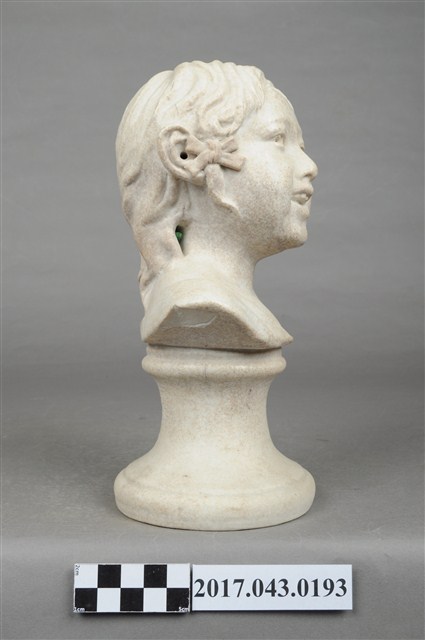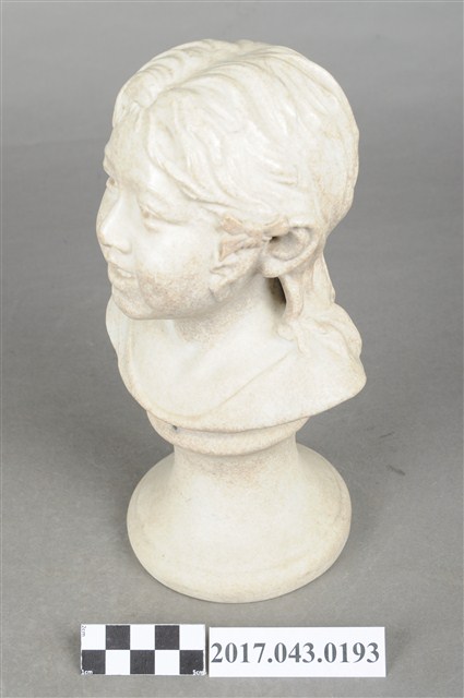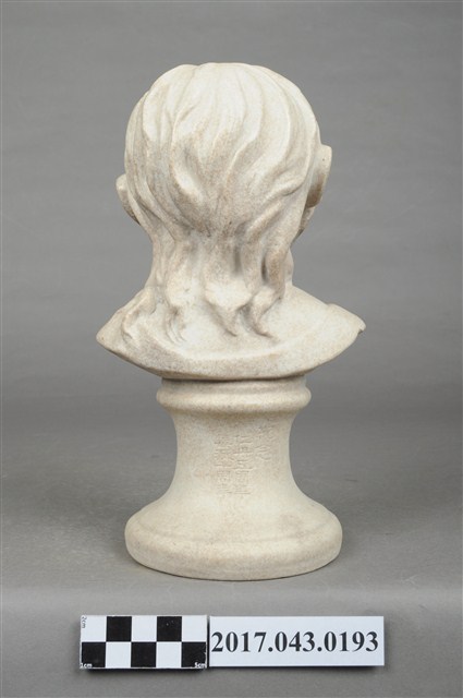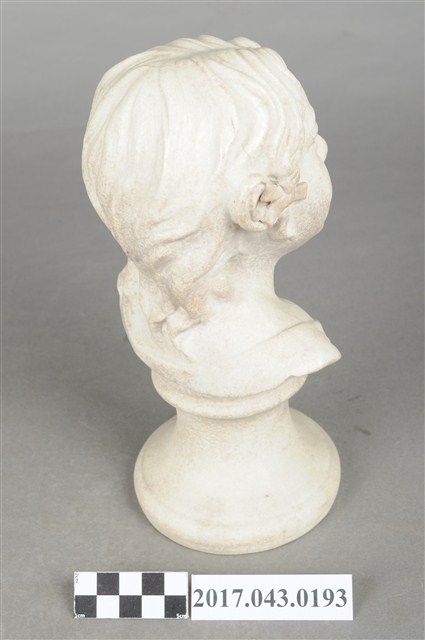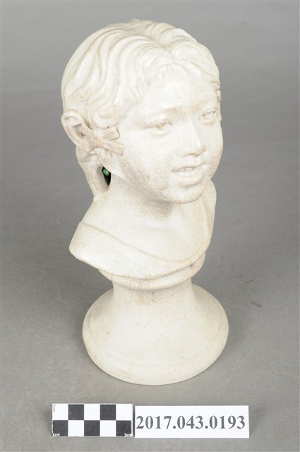 1.京都清水藤林製石雕少女頭像,為一少女仰頭朝向遠方咧嘴微笑之頭像,原屬畫家陳澄波先生之遺物。雕像的作者極力在堅硬的石材媒介上表現出少女柔軟而縷縷垂肩的頭髮,雙耳耳鬢間繫上的蝴蝶結也增添少女的稚嫩可愛。作者也細緻刻畫少女五官,如少女的眼瞼、雙眼皮以及顯露年齡的分明牙齒。頭像雕刻範圍至胸上,胸下為一圓柱體底座。底座背後刻「紀念 仁丹五周年 毒滅十周年」,底部則刻「京都清水 藤林製」之字樣。