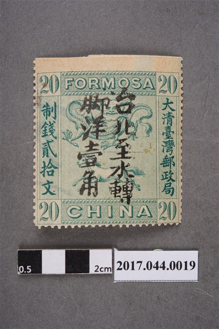 2017.044.0019 Bradbury, Wikinson公司印製大清臺灣郵政局臺北至水轉腳洋1角龍馬票