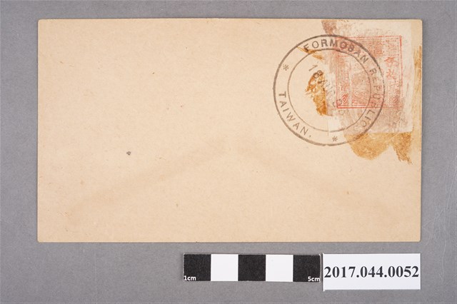 2017.044.0052 臺灣民主國第一版50錢郵票實寄封