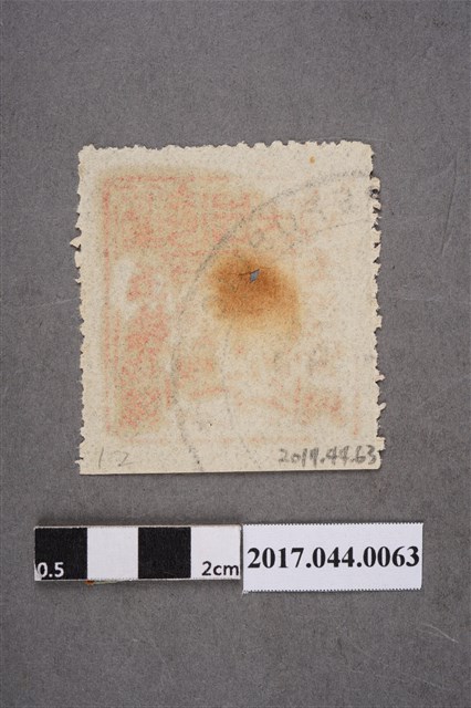 2.臺灣民主國郵票又稱「獨虎票」,部分西方文獻指為「黑旗票」。據捐贈者李明亮指出,臺灣民主國郵票是1895年8月任職安平海關的英國人麥嘉林(C. A. McCallum)所創,交由安平海關經營,最初發行的動機是為了替黑旗軍劉永福籌備軍餉,先後發行了五種版次(包括試用版),每版發行一套三枚,面值30錢、50錢、100錢。試用版、第一版至第三版可能的發行時間約為1895年8月中旬至9月初期間,使用至同年10月19日,第四版則未被使用過。郵票印製方式是以手工逐一蓋印,最後再以另一版模印上面值。 (蔡宜璇撰寫)
