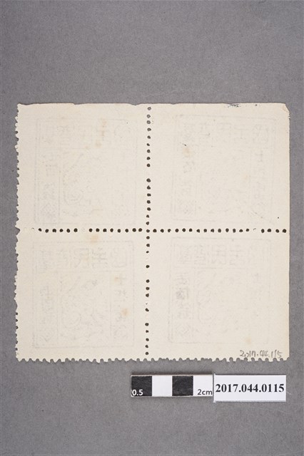 2017.044.0115 臺灣民主國郵票第三版B壹佰錢四方連