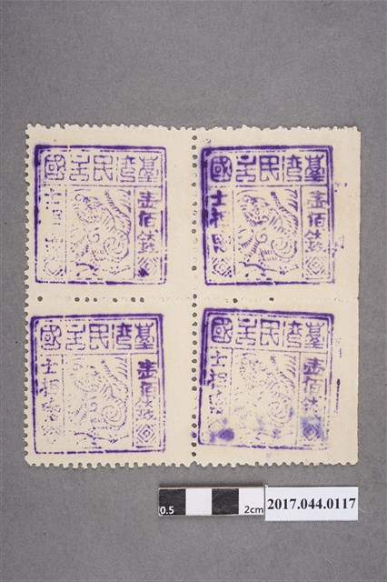 2017.044.0117 臺灣民主國郵票第三版B壹佰錢四方連
