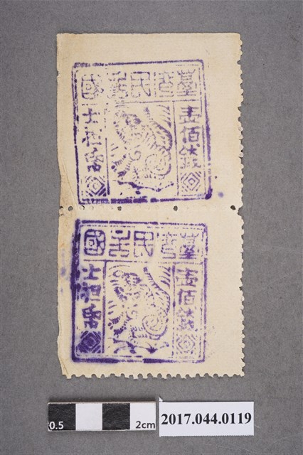 2017.044.0119 臺灣民主國郵票第三版B壹佰錢雙連