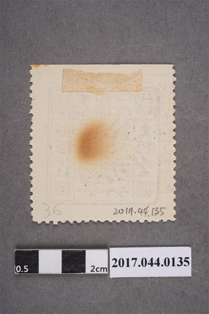 3.臺灣民主國郵票又稱「獨虎票」,部分西方文獻指為「黑旗票」。據捐贈者李明亮指出,臺灣民主國郵票是1895年8月任職安平海關的英國人麥嘉林(C. A. McCallum)所創,交由安平海關經營,最初發行的動機是為了替黑旗軍劉永福籌備軍餉,先後發行了五種版次(包括試用版),每版發行一套三枚,面值30錢、50錢、100錢。試用版、第一版至第三版可能的發行時間約為1895年8月中旬至9月初期間,使用至同年10月19日,第四版則未被使用過。郵票印製方式是以手工逐一蓋印,最後再以另一版模印上面值。 (蔡宜璇撰寫)