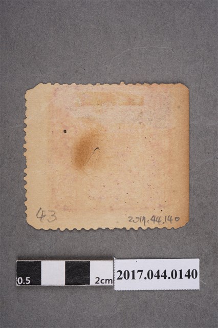 3.臺灣民主國郵票又稱「獨虎票」,部分西方文獻指為「黑旗票」。據捐贈者李明亮指出,臺灣民主國郵票是1895年8月任職安平海關的英國人麥嘉林(C. A. McCallum)所創,交由安平海關經營,最初發行的動機是為了替黑旗軍劉永福籌備軍餉,先後發行了五種版次(包括試用版),每版發行一套三枚,面值30錢、50錢、100錢。試用版、第一版至第三版可能的發行時間約為1895年8月中旬至9月初期間,使用至同年10月19日,第四版則未被使用過。郵票印製方式是以手工逐一蓋印,最後再以另一版模印上面值。 (蔡宜璇撰寫)
